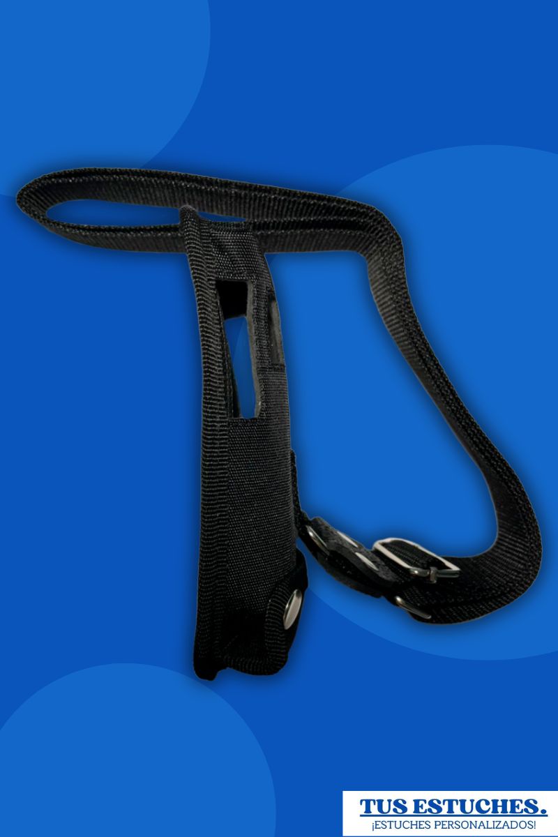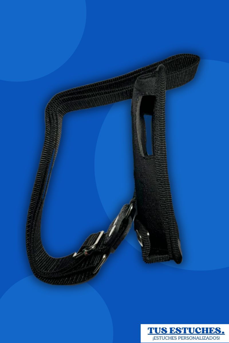 - Correa para llevar al cuello en riata de 1″ 1/4 con corbatin en cuero remachado y trabilla para acortar y alargar.